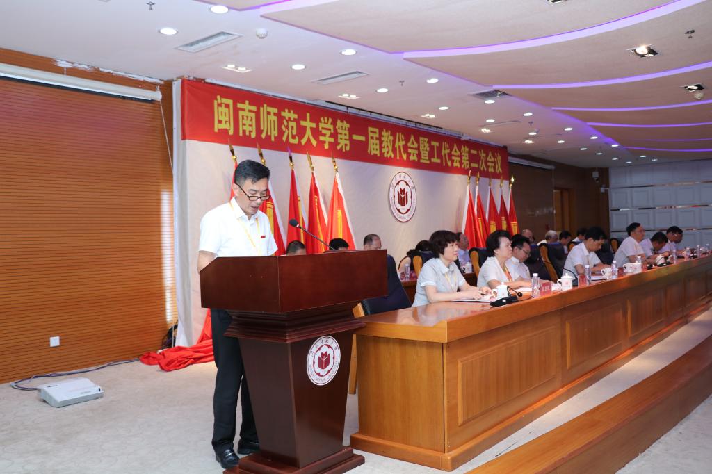 校党委书记吴彬镪在会上作了讲话,充分肯定了本次大会所取得的成绩,并就“汇聚奋进之力 高质量推进新闽师建设”提出三点意见:一是牢记使命职责,强化责任担当作表率;二是服务改革大局,凝聚发展合力当先锋;三是加强自身建设,充分发挥职能筑桥梁。