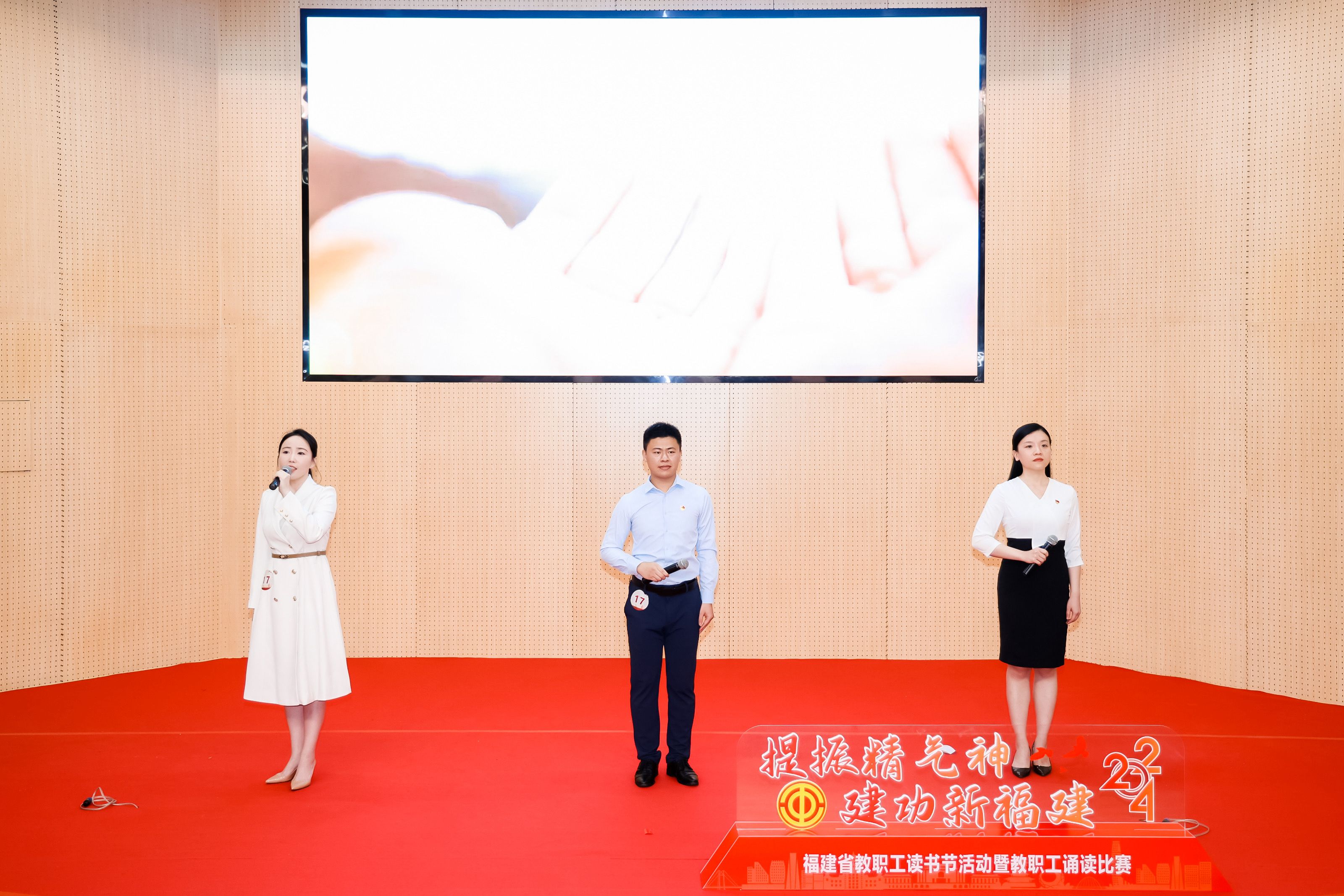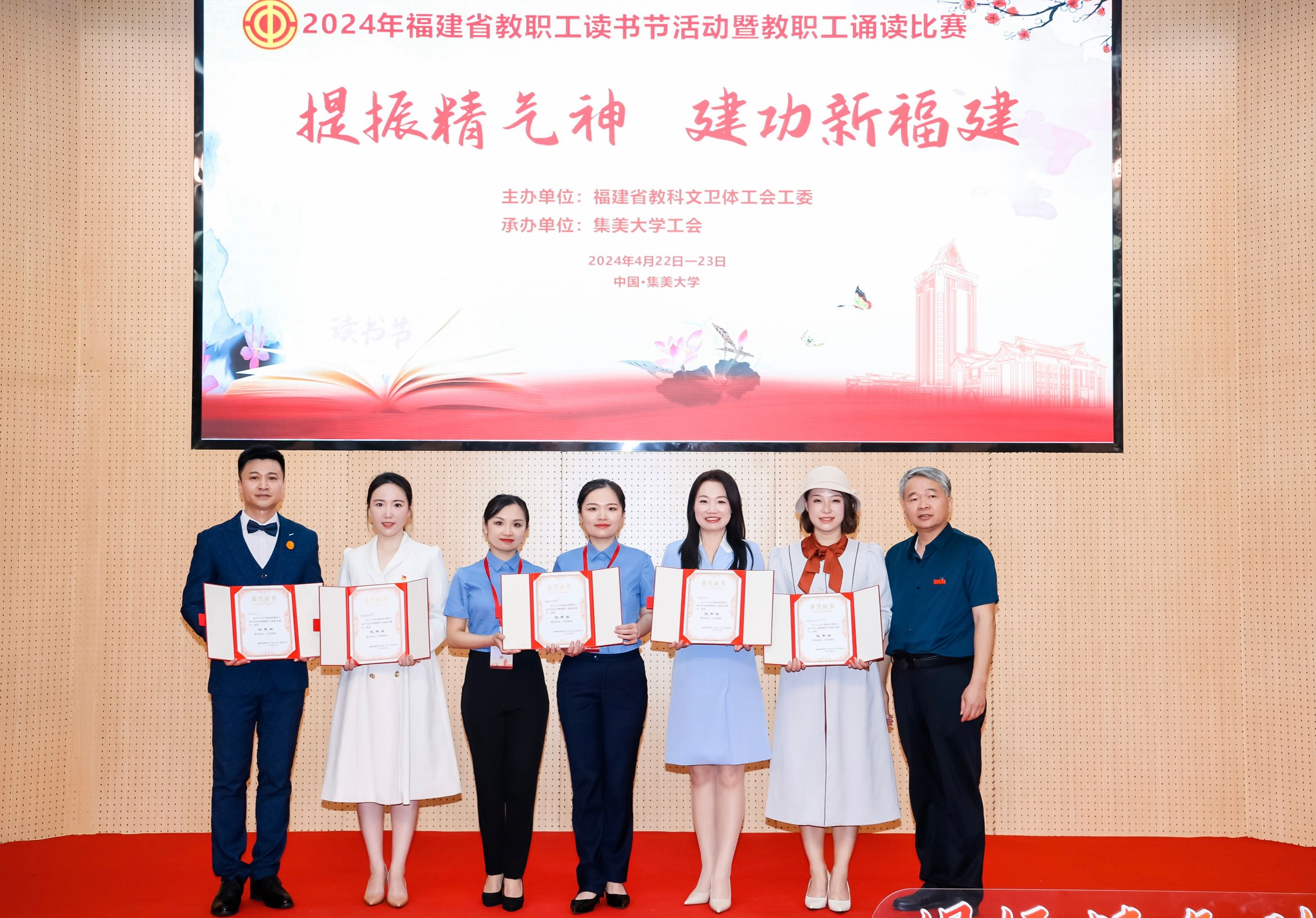 2024年4月23日上午,由福建省教科文卫体工会主办、集美大学工会承办的2024年福建省教职工读书节活动暨“提振精气神 建功新福建”教职工诵读比赛在集美大学举行。我校团委柯馨茹、文学院廉子群、商学院游凌燕三位教职工代表参加决赛并获省级优秀奖。