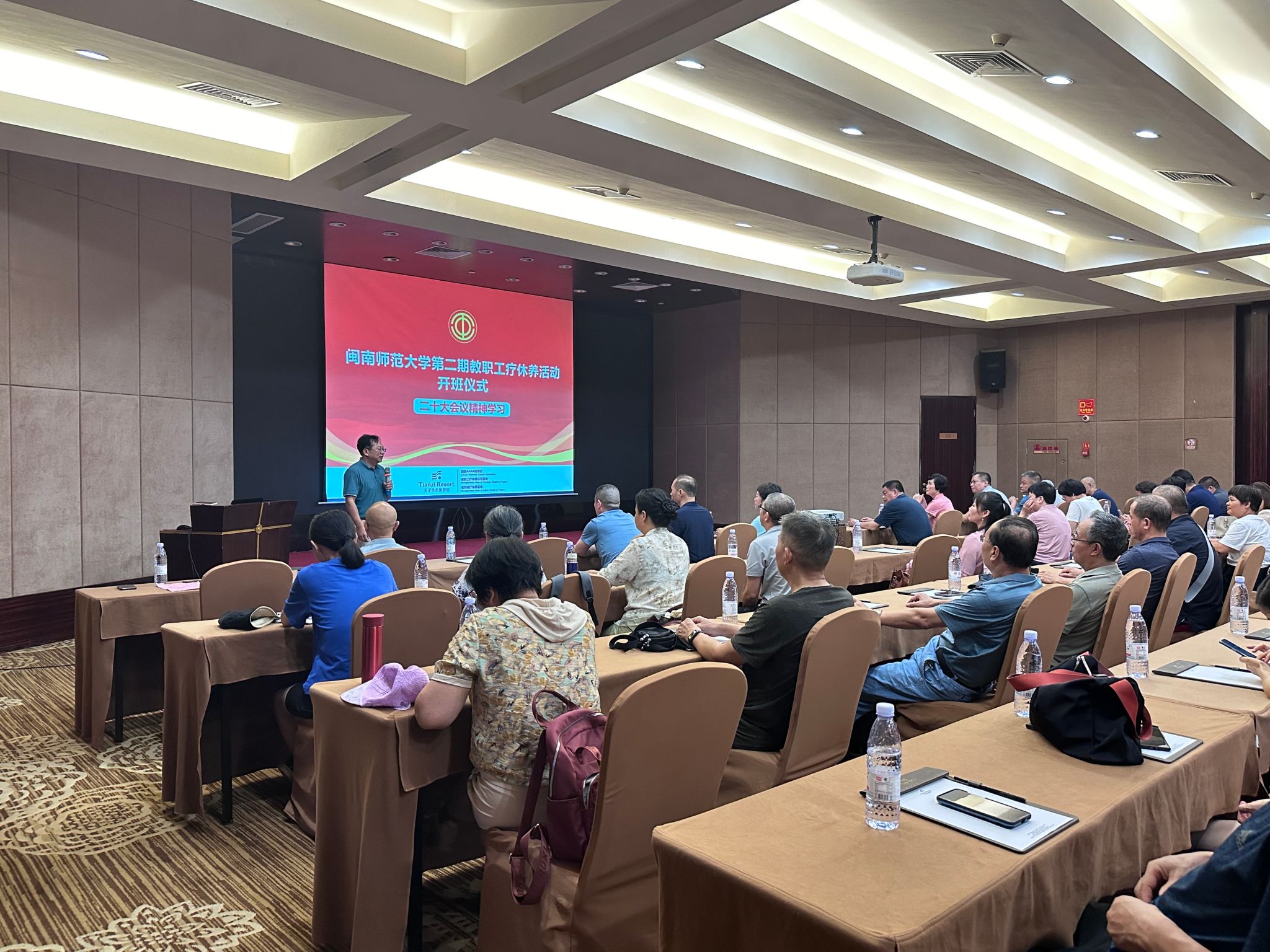 7月8日-12日,tyc5997太阳集团第二期教职工疗休养活动在永定天子温泉疗休养基地举行。来自学校不同岗位的一线教职工99人参加本次活动。校党委常委、副校长何绍福出席开班式并致辞。
