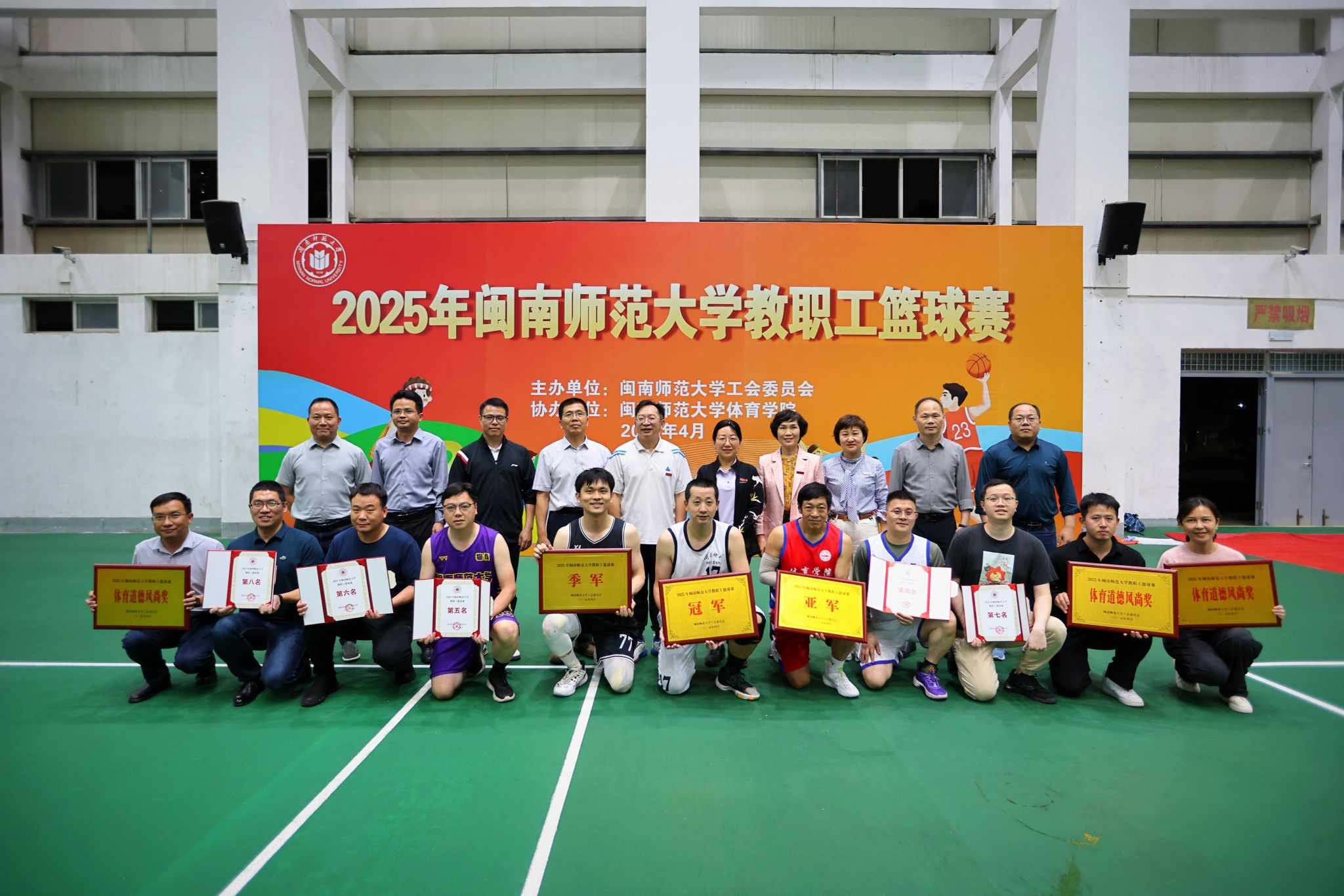 4月27日,2025年tyc5997太阳集团教职工篮球赛落下帷幕。校党委副书记廖志丹,校党委常委、副校长何绍福出席闭幕式,并为获奖代表颁奖。